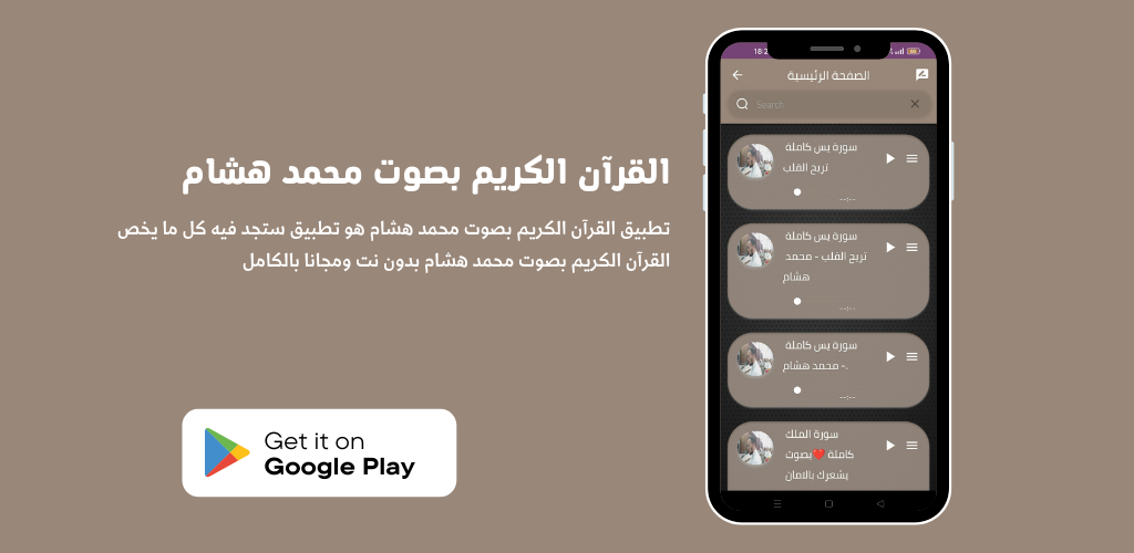 ✅ إذا كنت شغوف ومحب للاستماع إلى القران ، فإن تطبيق محمد هشام حسن القران الكريم سيساعدك في ذلك كما ان التطبيق سيساعدك في تنزيل القران الكريم محمد هشام حسن إلى هاتفك بسهولة