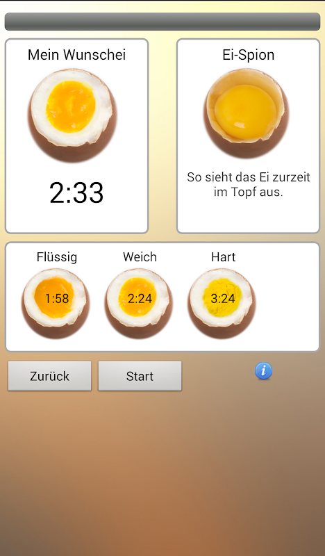 Kullanımı: basitçe, senin yumurtanın tam boyutunu ölçmek Android-Telefon üzerine yerleştirin ve için parmak ucunuzu kullanarak boyutunu ayarlamak için. Geçerli yüksekliği belirleyin (veya GPS ile tespit izin) Eğer dondurucuda veya oda sıcaklığında yumurta tutulması durumunda, Android-Telefon söylemek ve yumurta istiyorum - nasıl, haşlanmış yumuşak haşlanmış ya da bir şey -arasında.