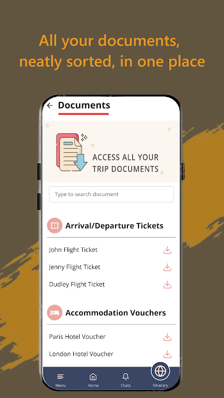 Tüm kuponlarınız ve belgeleriniz tek bir yerde: Kağıtsız çalışın. Seyahat planınızı, biletlerinizi, otel onaylarınızı ve tüm önemli belgelerinizi uygulamadan alın.