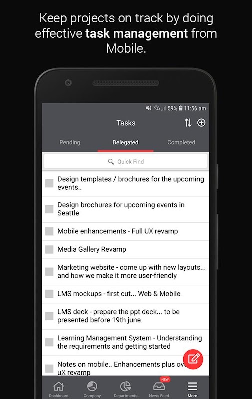 Task Management: Your personal and team tasks are accessible from your mobile device anywhere, anytime.