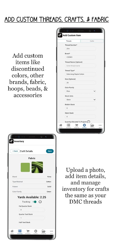 • 3000'den fazla DMC ipliği için envanteri görüntüleyin ve yönetin