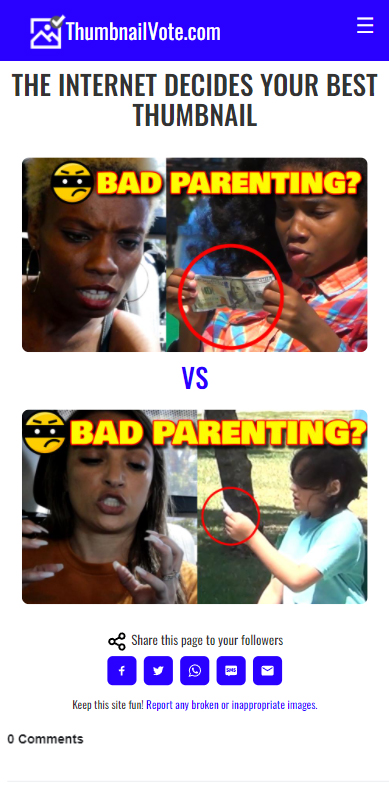 Content Creators know that the thumbnail is the most important element to going viral. Now take the guess work out by using ThumbnailVote.com! The internet will help make the decision for you.