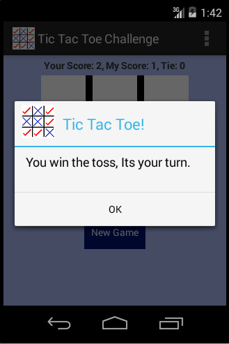 Tic Tac Toe Mücadelesi Bu oyun Biri sadece başlangıç ​​Başlayanlar insanlar için üç farklı zorluk seviyesi, Seviye vardır, oyun severler için ücretsiz bir oyundur, Seviye İki Normal halkları için ve seviye üç kimse onlara meydan düşünüyorum Uzmanlar içindir. Bu çok hafif oyun ve her yaş grubu anlamak ve bu oyunu oynayabilir.
