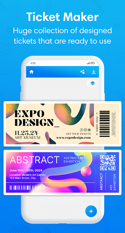 Ticket Maker, herkesin benzersiz ve göz alıcı etkinlik bileti tasarımlarıyla yaratıcılığını ortaya koyabileceği bir kart tasarım uygulamasıdır.