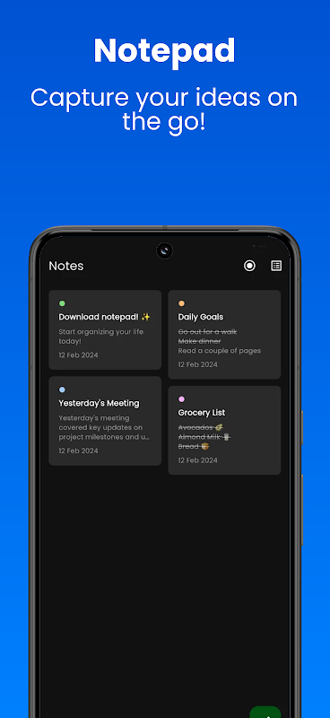 Jotly, notlarınızı ve görevlerinizi basit ve etkili bir şekilde düzenlemenizi sağlar. Kolaylık ve verimlilik için tasarlanmış bir not defteri ve kontrol listesi uygulamasına başlamak için bugün indirin!