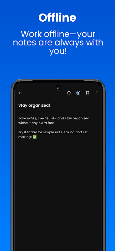 • Tüm not alma ve kontrol listesi ihtiyaçlarınız için temiz, dikkat dağıtıcı olmayan bir arayüz sağlar.
