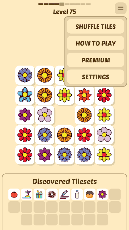 Discover and collect more than 20 tilesets at your own pace - food 🍅, fruits 🍏, flowers 🌷, animals 🐱, holiday 🎂, bakery 🍰 and much more! Become the TILE CONNECT master! ⭐️