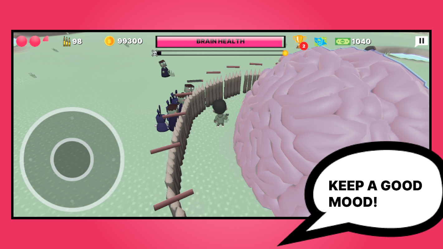Haritanın ortasında büyük bir beyin var, onu gelen zombilerden korumanız gerekiyor!