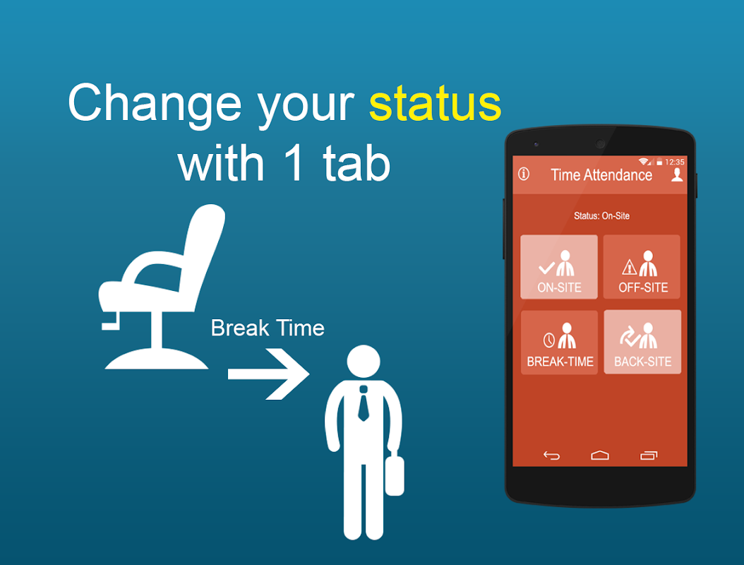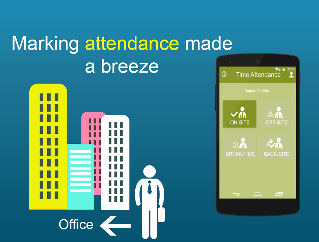 We present an easy to use app that acts as a portable attendance system. The employees can simply use their mobile phones to login and just press a button to update their entrance and exit time. It sends the details to the management and it is as simple as that!