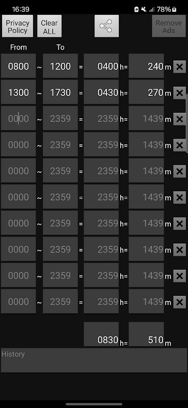 Başlangıç zamanı ve bitiş zamanından geçen süreyi ve başlangıç zamanı ve geçen zamandan bitiş zamanını hesaplayan basit bir zaman hesaplama ücretsiz uygulaması. Aynı anda 10 vaka için zaman hesaplaması, zaman hesaplama sonuçlarının toplam hesaplanması, zaman hesaplama geçmişi. Vardiyalı çalışma süresi yönetimi için.
