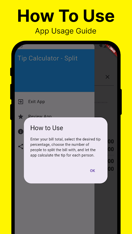 - ANLIK HESAPLAMALAR: Bireysel bahşiş tutarlarını ve kişi başına borçlu olunan tutarı anında görün.