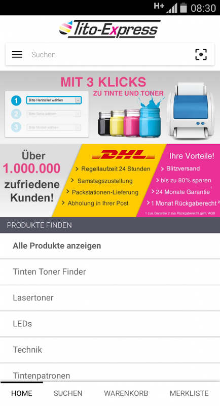 Mürekkep, toner, teknoloji ve daha fazlası. Tito Express App bile daha hızlı alışveriş,