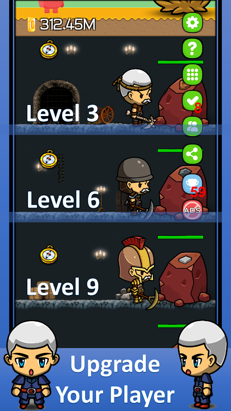 Madencilik ve Savaş: Düşman dalgalarıyla savaşırken değerli kaynakları çıkarın. Daha hızlı madencilik yapmak, daha derine inmek ve daha iyi teçhizat kullanmak için karakterinizi yükseltin.