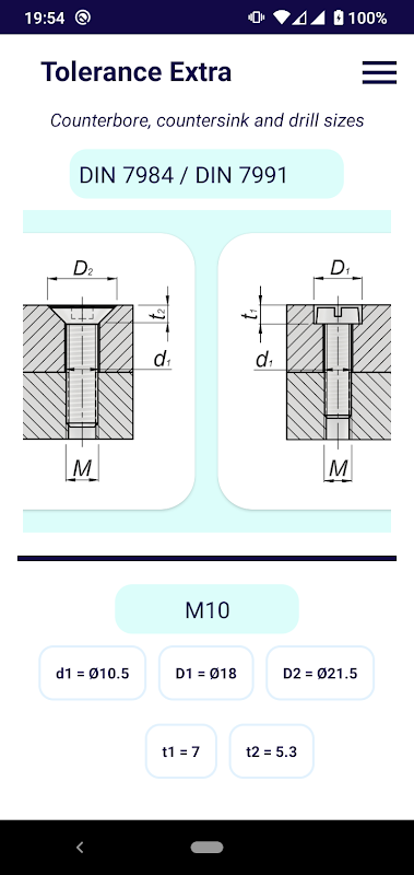 Counterbore, countersink and drill sizes (metric) for machine screws.