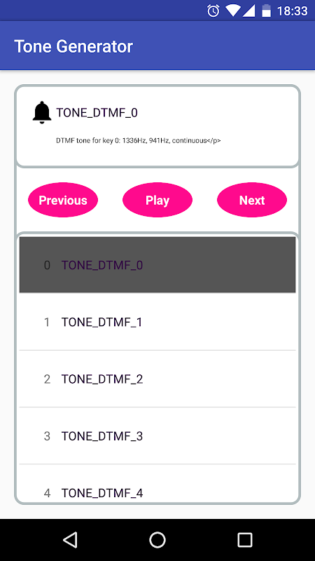 Help utility allow you to listen to android ToneGenerator.class constant sounds, no ads, open-source, GPLv3.