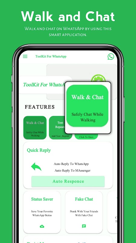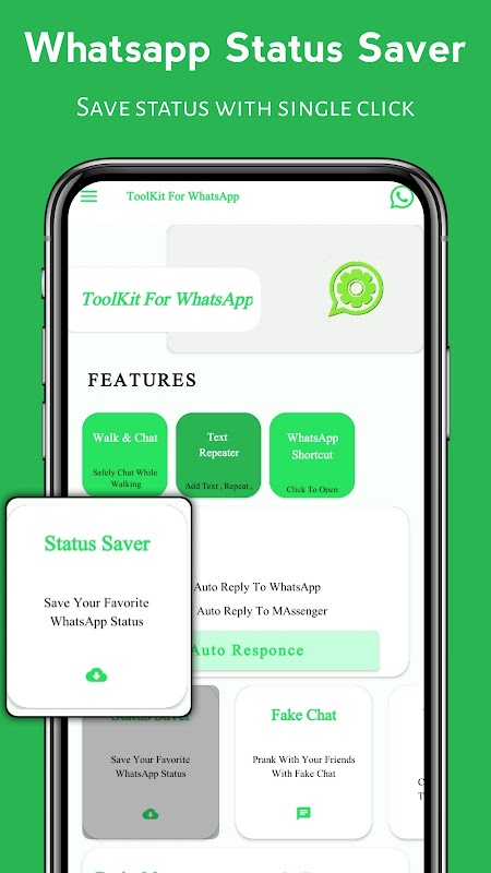 Whatsapp için Whatsapp araç seti değerli bir uygulamadır. Cep telefonları için tasarlanmış araçlar kategorisine aittir. Bu araç özellikle whatsapp için tasarlanmıştır. Tek bir uygulamada tüm özellikleri sunar. Bu uygulamayı indirdikten sonra durum koruyucu, sahte sohbetler ve çok daha fazlası için uygulamalar indirmenize gerek yok. Tüm bu ilginç özellikler için whatsapp araç kutumuzu indirmeniz yeterli. Size sadece bir uygulamada heyecan verici özellikler sunuyoruz.