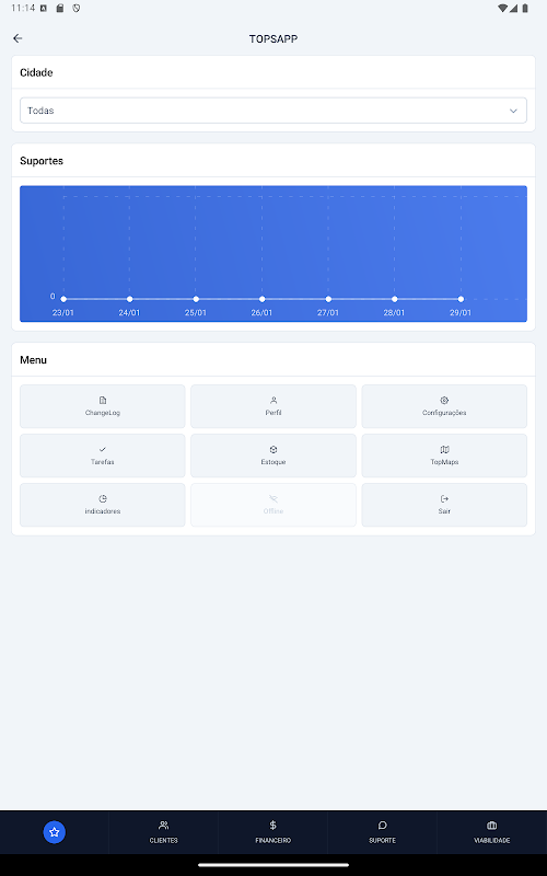 TopSapp v2, müşteriler, faturalar, teknik destek, fizibilite ve envanter gibi çeşitli alanların merkezi kontrolüne olanak tanıyan, verimli iş yönetimi için eksiksiz ve entegre bir çözüm sunmak üzere oluşturuldu. Bununla müşteri bilgilerini kolayca yönetebilir ve düzenleyebilir, anlaşmalı hizmetlerin durumunu takip edebilir ve müşterinin adresine veya konumuna doğru bir şekilde gidebilirsiniz.