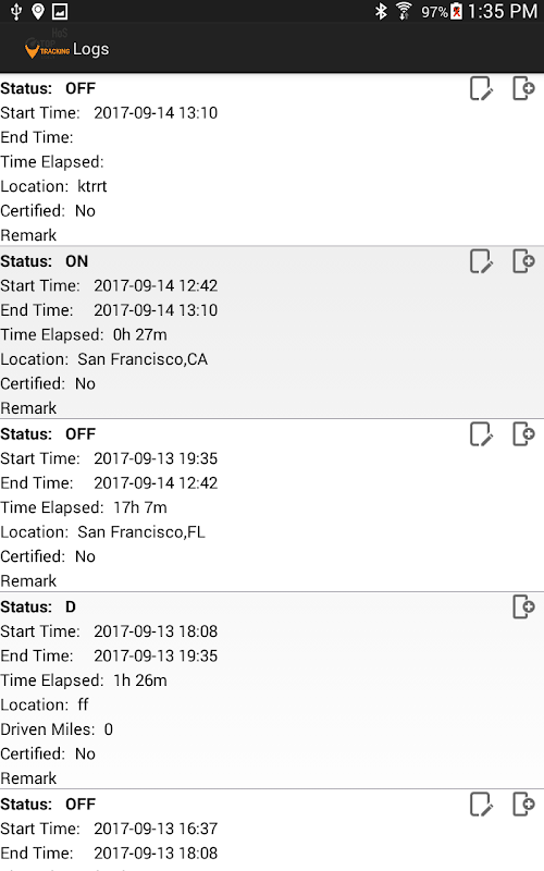 Sürücü görev durumunu kaydetmek ve ELD yönergesi ve en son Hizmet Saatleri düzenlemelerine uymak için FMCSA uyumlu uygulama.