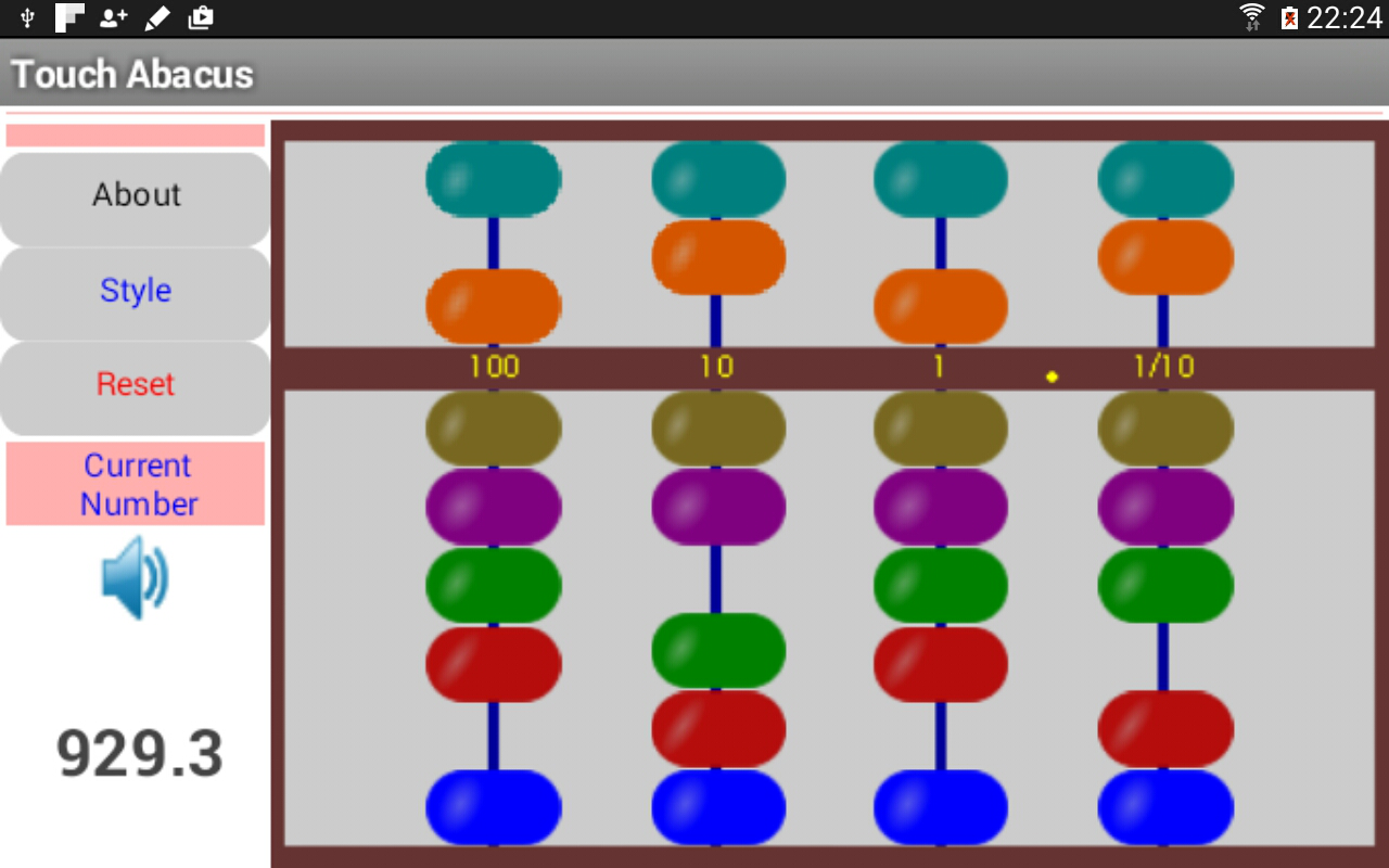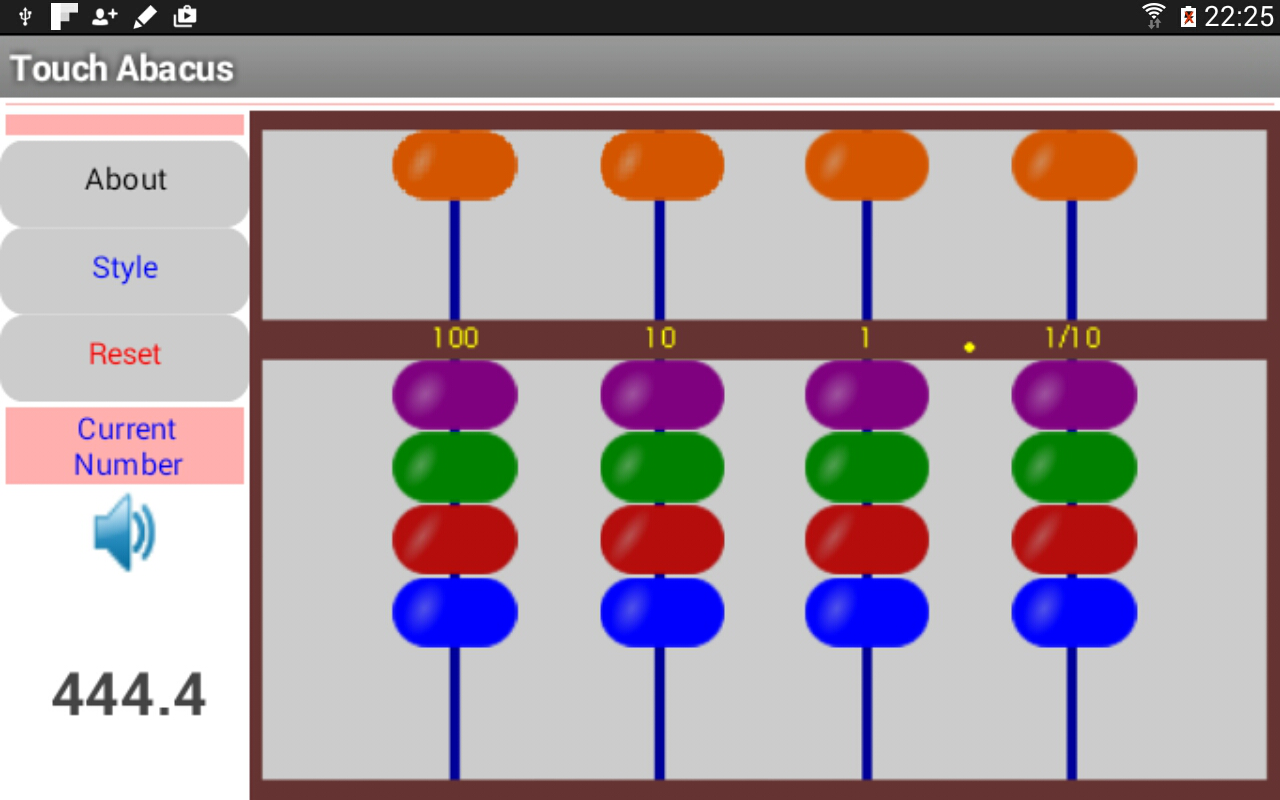 Basit Dokunmatik Abacus erken matematik öğrenmede sayı duygusunun gelişimi için amaçlanmıştır. abaküs, çeşitli kültürlerde uzun bir geçmişi vardır ve bir bakıma somut ve soyut hem de. Bu uygulama Çin ve Japon sürümlerini sağlar. Japon versiyonu bir dikey çubuk beş boncuk sahipken Çin abaküs, bir dikey çubuk üzerinde yedi boncuk vardır. Merkez kirişe doğru takıldığında Genel bir kural olarak, alt güvertede her boncuk birini temsil eder. Merkez kiriş taşındı üst güverte, her boncuk beş temsil eder. Japon abaküs, her çubuk sıfır dokuz birimleri temsil edebilir. Buna karşılık, Çin abaküs böylece taban-16 sistemini kullanarak hesaplama destekleyen, her çubuğunda sıfır 15 ile birimlerin temsil izin verir. Baz-10 sisteminde, en üst ve altta iki boncuk kullanılmamaktadır. Ondalık noktasının Hakkında, kullanıcılar, aslında, kendi özel ihtiyaçlarına bağlı olarak, kendi yerini seçebilirsiniz. Bu abaküs uygulaması MIT AI 2, eğitimciler için ücretsiz kullanarak Dr. Lingguo Ayşe (