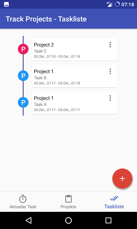 In der App kann man Projekte anlegen und zu jedem Projekt Tasks starten.