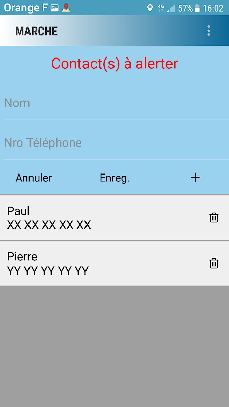Si vous avez un problème (agression, malaise…) vous pouvez activer la fonction Alerte.