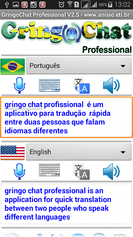 Pro v3.8 GringoChat uzak olma veya fiziksel kapatmak ederken, hızla farklı dil iki kişi arasındaki konuşma tercüme Android işletim sistemi ile akıllı telefonlar ve tabletler için bir uygulamadır.