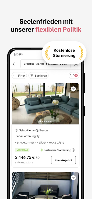 - Kapsamlı seçim: Avrupa ve ötesindeki 120.000'den fazla kiralık tatil yerini keşfedin.