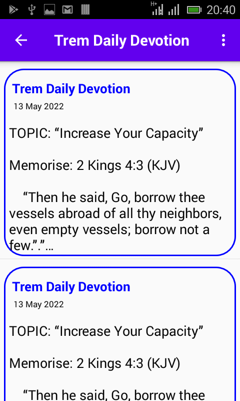 Trem Daily Devotion mobile App is a tool which provides an easy way to read your daily devotion on the go , it provides an easy to use interface which organizes the readings into calendar dates making it