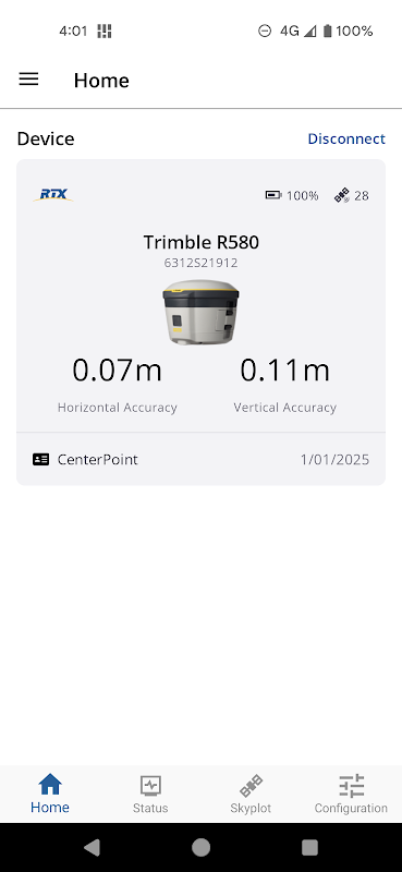 GNSS alıcınızı yapılandırmak ve test etmek, GNSS alıcılarını Trimble Precision SDK özellikli uygulamalarla kullanmak üzere ayarlamak veya Android Konum Hizmetlerini kullanan diğer uygulamalara bağlanmak ve yüksek hassasiyetli konumları paylaşmak için bu uygulamayı kullanın.