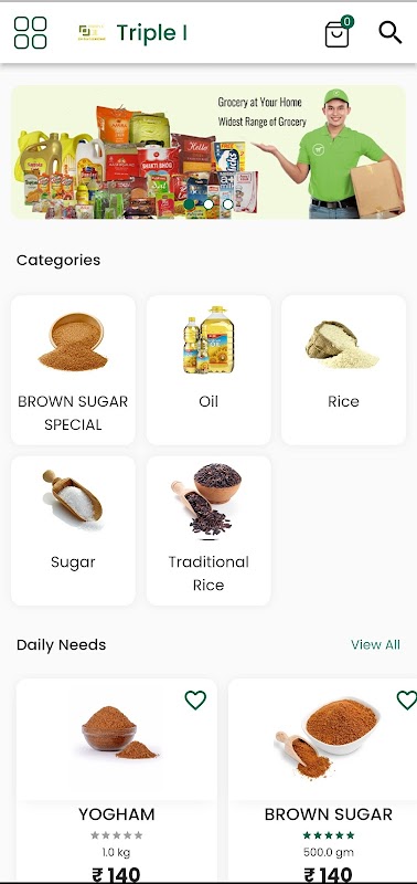 Triple I, çevrimiçi bir market teslimat ürünü Uygulaması ve gerçek hayattaki bir süpermarkettir.