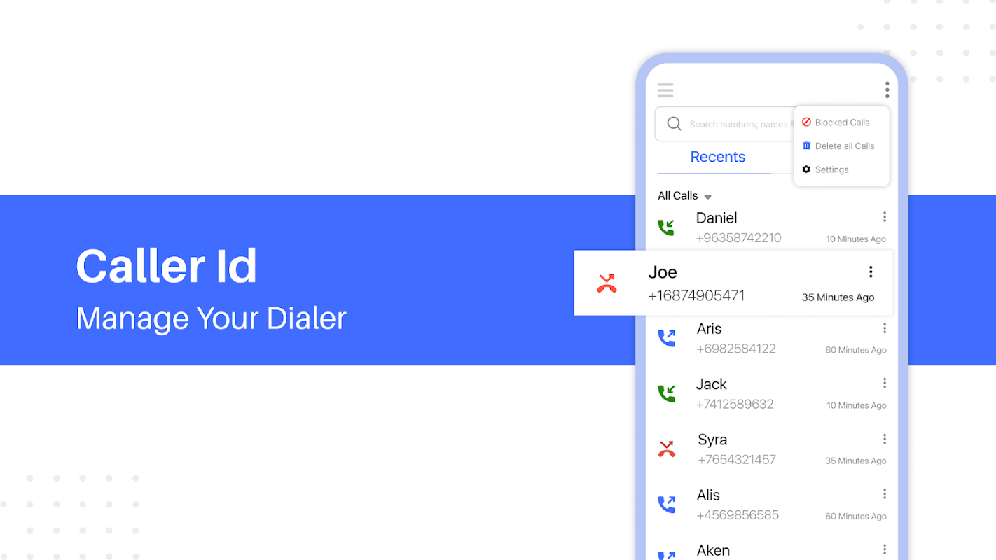 Arayan Kimliği Uygulaması, doğrudan uygulamada telefon görüşmeleri yapabileceğiniz çok çeşitli özelleştirilmiş çeviriciler sağlar. Yavaş ve sezgisel olmayan telefon arayan Uygulamanızı gelişmiş bir Telefon Arayan ile değiştirin ve güçlü özellikleri deneyimleyin. Şu andan itibaren Çeviriciniz, numarayı bloke etmek için gerçekten sizindir. Bu özelliği kullanarak sizi kimlerin arayabileceğini seçebilirsiniz. Özelleştirilebilir tuş takımlarıyla, tuş takımını kendi başınıza seçebilirsiniz. Arama günlüklerinizde ve kişilerinizde hızlı bir şekilde arama yapmak için akıllı çeviricimizi kullanın ve en sorunsuz arama deneyiminin keyfini çıkarın!