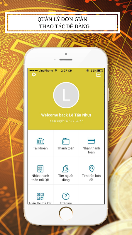 - Chuyển tiền: Scan&Pay, Tap&Pay, Chuyển tiền (qua số đt, email)