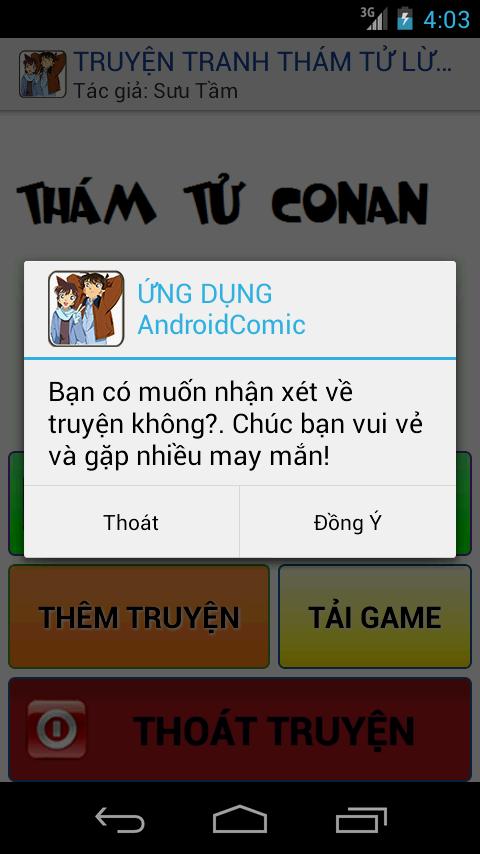 Nhắc đến truyện bộ truyện tranh nổi tiếng Conan thì chắc chắn không ai không biết, đây là bộ truyện tranh trinh thám, hành động cùng đôi chút hài hước. Ứng dụng tổng hợp hơn 1000 chương truyện tranh Conan. Bạn còn chờ gì nữa, hãy tải truyện và cùng say mê với những câu truyện hấp dẫn và những suy đoán tài tình của conan.