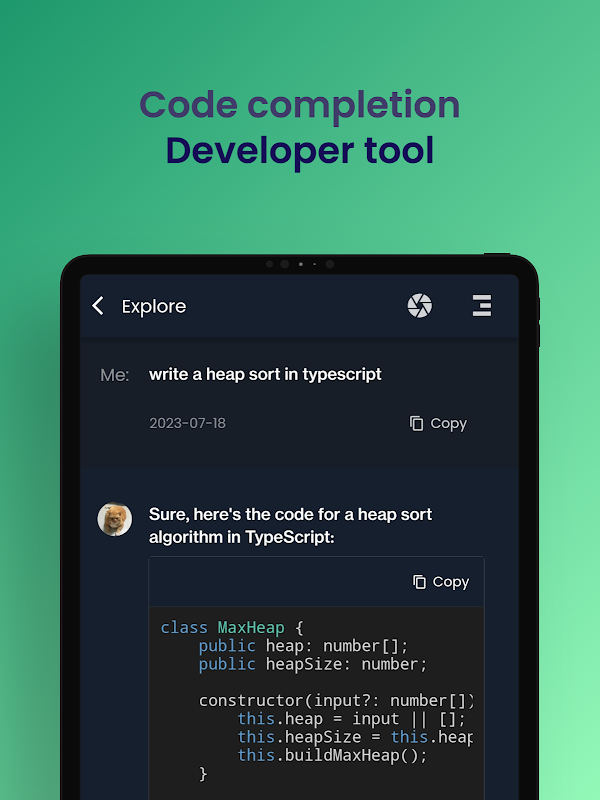 AI sohbet uygulamamızda, GPT-3 turbo ve GPT4 modeli ChatGPT'yi herhangi bir oturum açma gereksinimi olmadan tamamen entegre ediyoruz, sadece sorularınızı yazabilir ve çok hızlı yanıtlar alabilirsiniz. AI chatbot'umuzla, onunla tıpkı internet arkadaşlarınız veya herhangi bir teknik sorunuza cevap verebilecek bir profesör gibi konuşabilirsiniz.