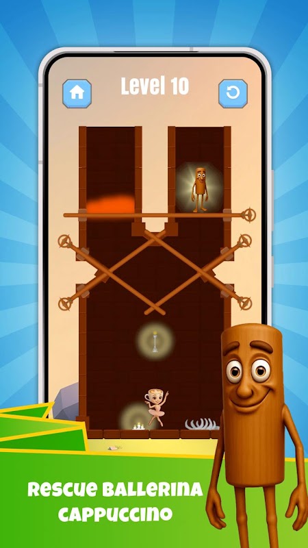 Tung Tung Sahur - Pull the Pin, ilginç kahraman Tung Tung Sahur'un zarif Balerin Capuccina'yı tehlikeden kurtarmasına yardım ettiğiniz eğlenceli ve bağımlılık yapan bir bulmaca oyunudur!