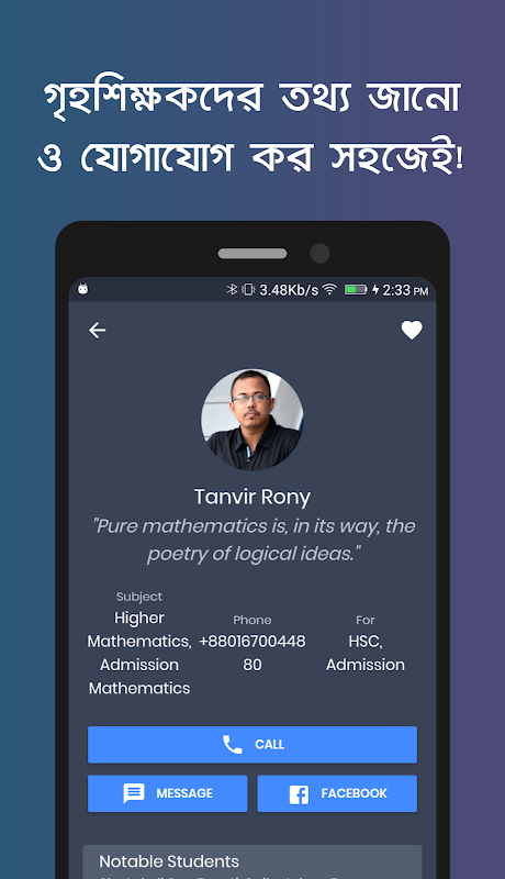 • তোমার এলাকায় আগ্রহী গৃহশিক্ষকদের তালিকা।