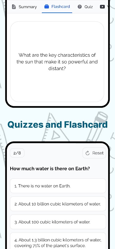• Akıllı Özetler ve Çalışma Araçları: Notları, videoları, web sitelerini ve hatta resimleri hızlı özetlere, bilgi kartlarına ve testlere dönüştürün; tıpkı sihir gibi!