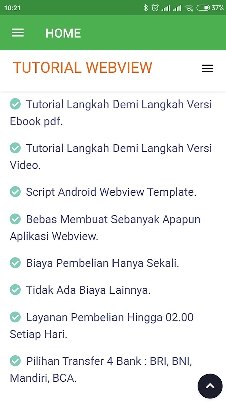 Aplikasi ini adalah Sample Aplikasi Webview dari tutorial cara membuat webview menggunakan script template android native.