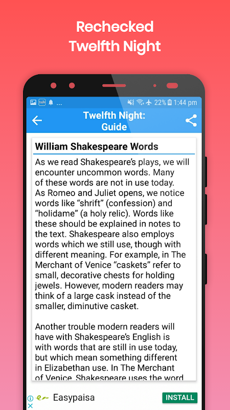 The guide is designed both for college and university English literature students. Both can fetch basic knowledge about the play using this app.