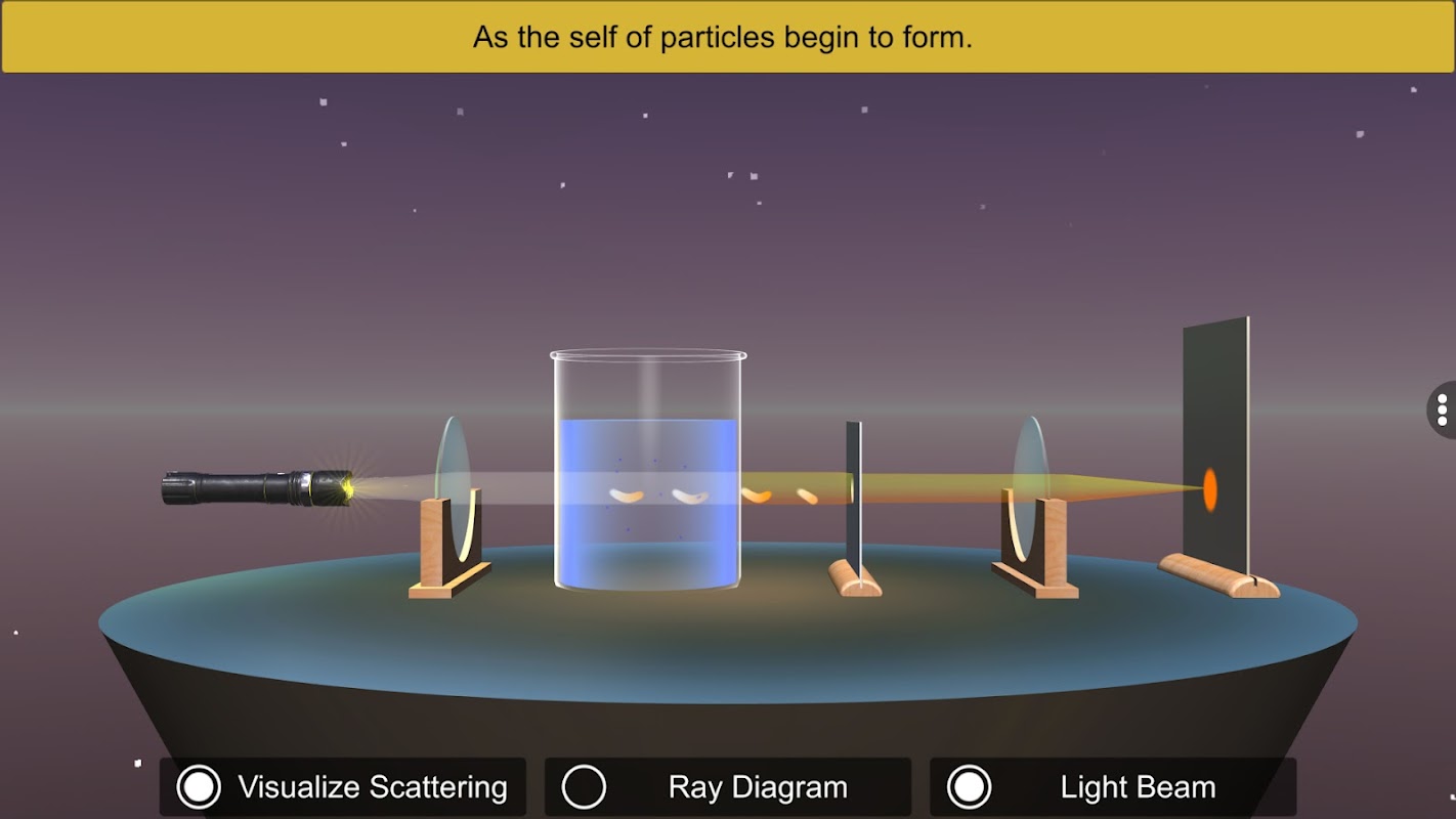 “Tyndall Etkisi” uygulaması, Tyndall Etkisi'nin laboratuvar deneyini tanımanız için rehberli bir tura çıkıyor. Uygulama, deney için adım adım protokolü parmağınızın ucuna getiriyor. "Tyndall Etkisi", deney için gerekli tüm aparatları gösterir. Ayrıca uygulama, deneyin Tyndall Etkisini göstermesi için tüm prosedürü gösterir.