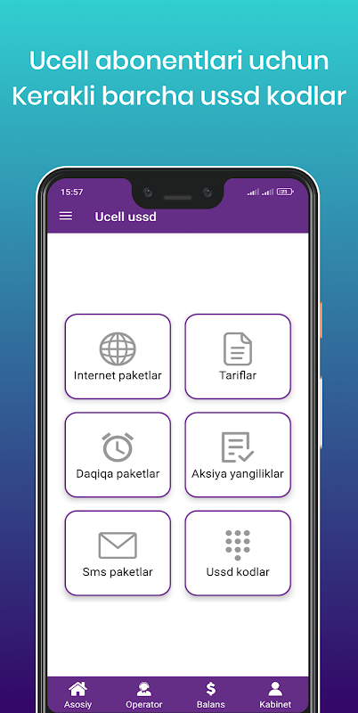 Ucell abonentlari uchun barcha kerakli USSD kodları ushbu ilovada mavjud.
