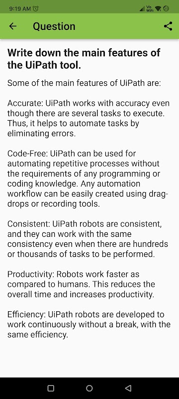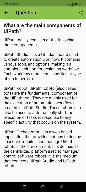 Teknik bir görüşmeye mi hazırlanıyorsunuz? Başka yerde arama! UI Path, teknik mülakatlarınızda başarılı olmanıza yardımcı olmak için burada. İster kariyerinize yeni başlayan bir acemi olun, ister seviye atlamak isteyen deneyimli bir profesyonel olun, uygulamamız, hazırlıklarınızı geliştirmek ve başarı şansınızı artırmak için kapsamlı bir mülakat soruları ve cevapları koleksiyonu sunar.
