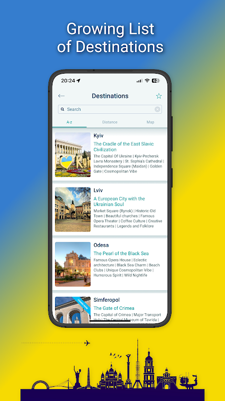Ukrayna Rehberi, indirilebilir bir simge ve turistik yer haritasına sahip akıllı bir seyahat rehberi uygulamasıdır. Ülkenin en popüler seyahat noktalarını kapsar ve gelecekte daha az bilinen şehirlerin bazılarını içerecektir.