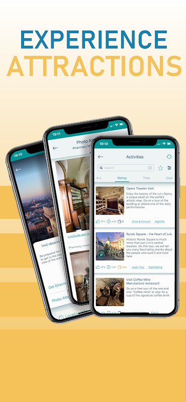 • SESLİ HİKAYELER VE REHBERLİ TURLAR – Şehri önceden kaydedilmiş sesli hikayelerle keşfedebilir veya yerel bir tur rehberiyle (varsa) bir tur seçebilirsiniz.