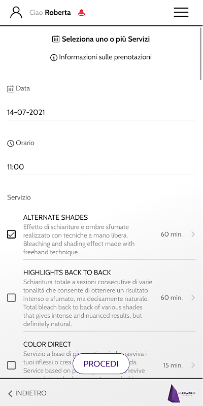 Il progetto Ultraviolet ci sta a cuore ed è per questo che lavoriamo per tenerlo sempre aggiornato. In questa nuova versione abbiamo introdotto la ricerca dei servizi in fase di prenotazione.