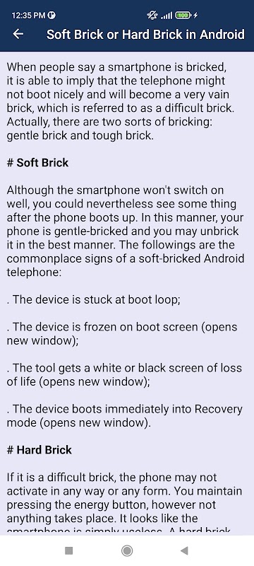 Unbrick Android Cihaz Rehberi ve Püf Noktaları Uygulaması çok kolay ve faydalı bir eğitim uygulamasıdır.