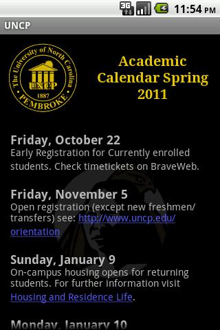 This app is an informational tool allowing you to discover more about UNCP. View the latest news, search the campus map, look up course information, search the campus directory, and more from your Android phone.