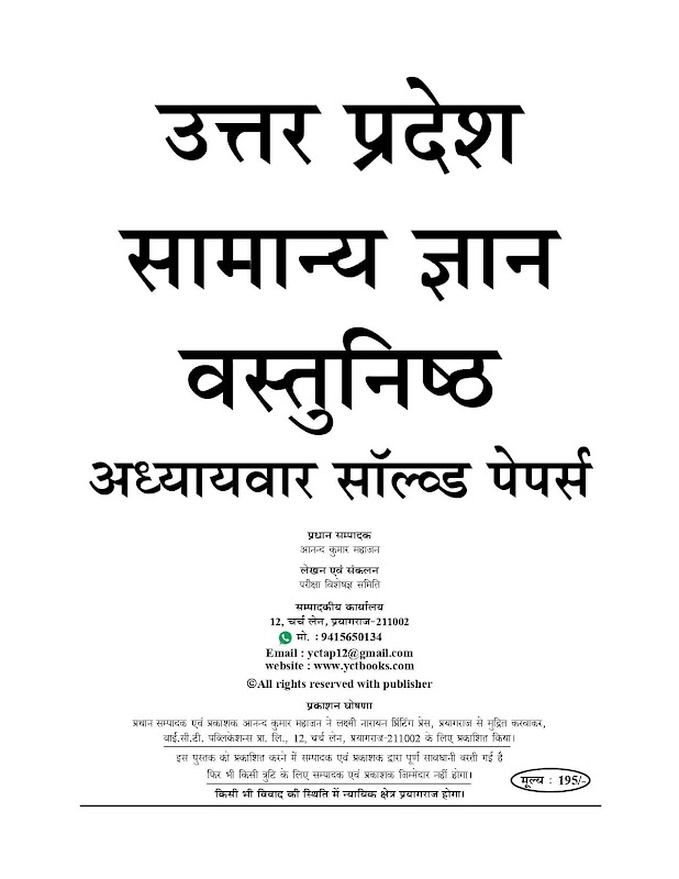 YCT uzman ekibi, UP GK OBJECTIVE CHAPTER-WISE SOLVED PAPERS adlı en iyi kitaplardan birini piyasaya sürüyor