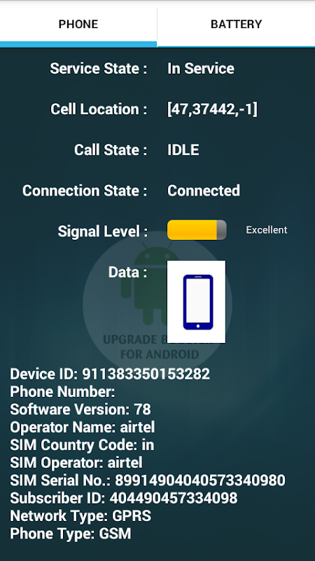 ☆Upgrade Your Android™ Phone App provides phone status in which you can check all information like about your device, SIM & battery.