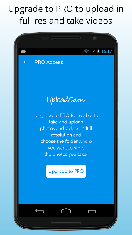 ► The FREE version of this app takes and uploads photos and videos in MEDIUM RESOLUTION ONLY. Upgrade to full version to take and upload photos in FULL resolution